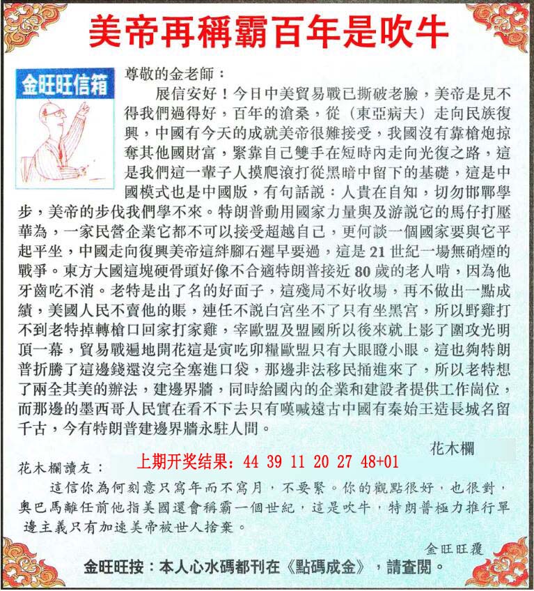 037期:澳门神算子『金旺旺信箱』
